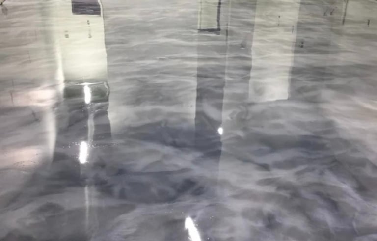 Son pisos hechos con resina epóxica autonivelante mezclada con pigmentos metálicos en polvo o líquidos, que al aplicarse generan efectos visuales dinámicos, como remolinos, vetas o texturas tipo mármol, lava o líquido en movimiento. Gracias a su acabado brillante y profundo, estos pisos ofrecen una apariencia lujosa, artística y moderna.